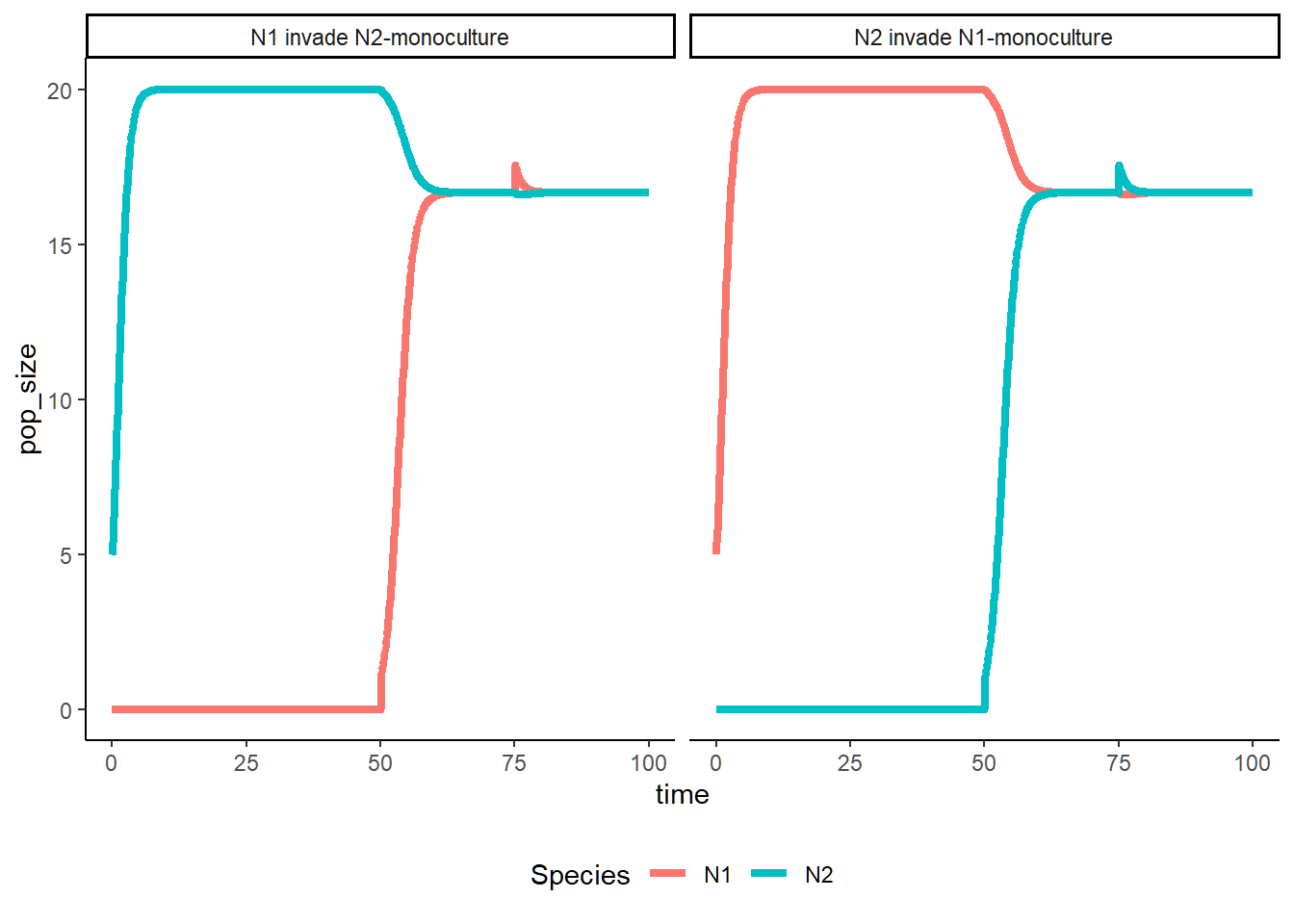 Data$Scenario <-rep(c("N2 invade N1-monoculture", "N1 invade N2-monoculture"),