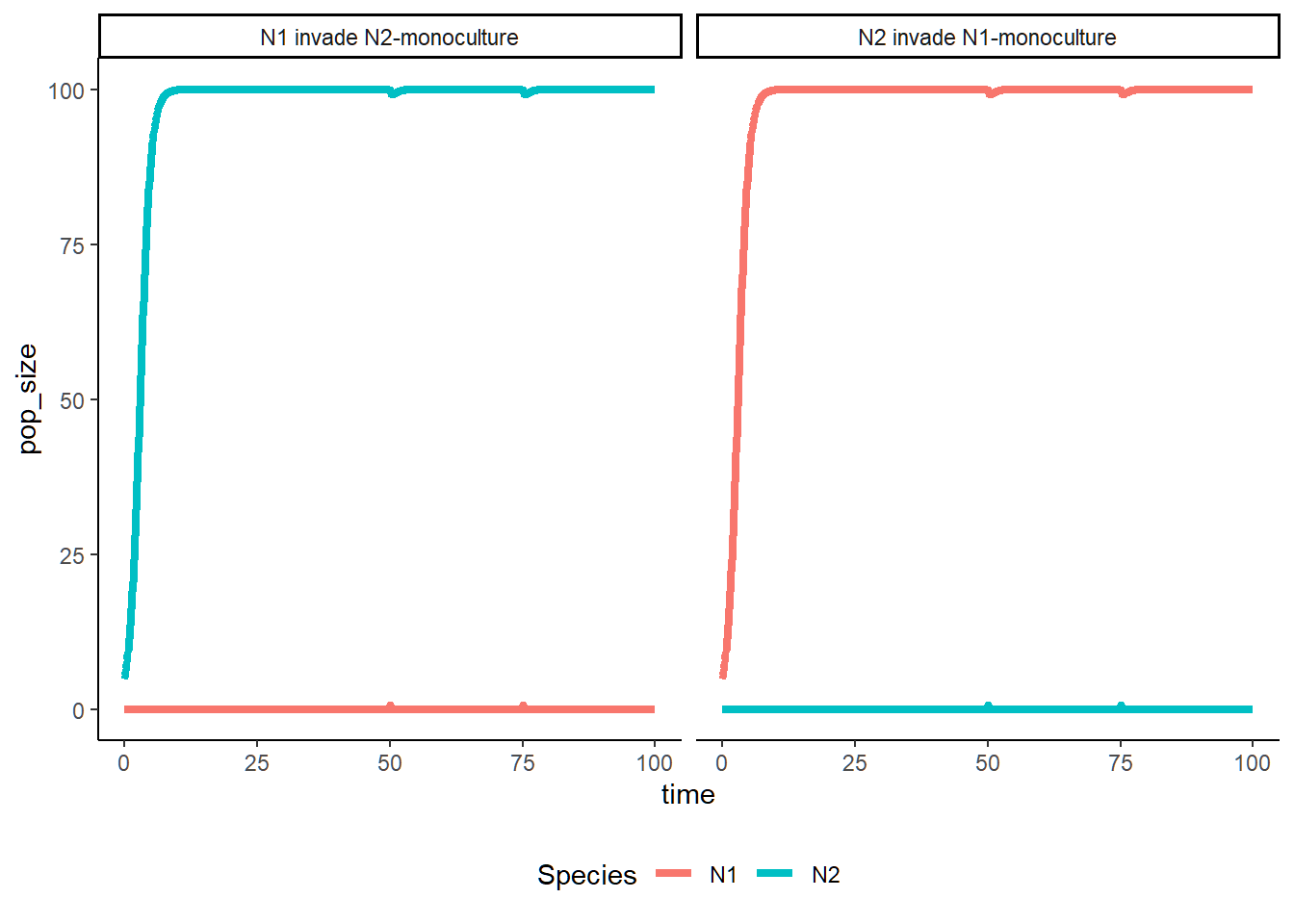 ### Priority Effect: N1 cannot invade & N2 cannot invade